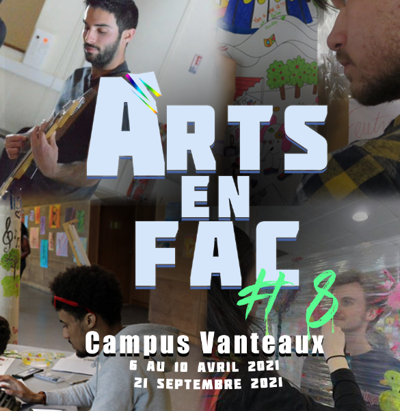 Les associations étudiantes de la Faculté des Lettres et des Sciences Humaines organisent la 8ème édition du Festival Arts en Fac du 6 au 9 Avril 2021. Pour maintenir arts en fac malgré le contexte sanitaire, le festival se déroulera majoritairement en ligne.