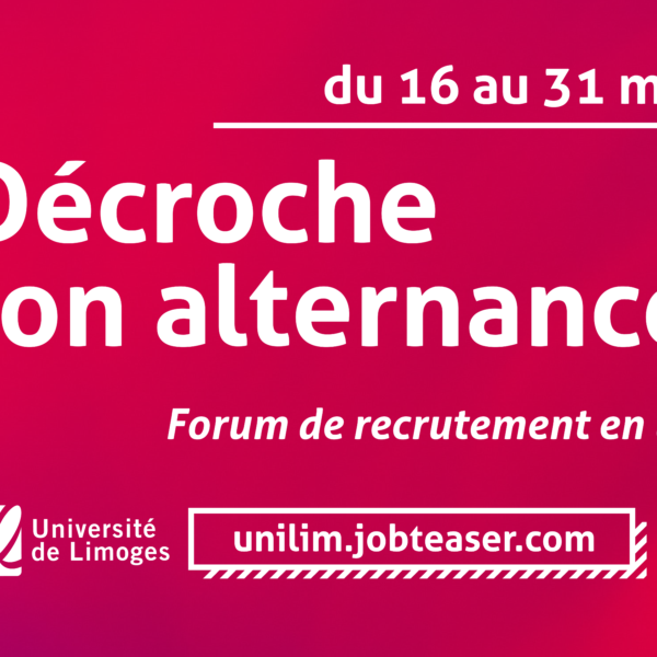 Afin de faciliter la mise en relation entre les étudiants candidats à l’alternance et les entreprises, le Pôle Formation de l’Unievrsité organise un forum de l’alternance en ligne. Ce forum multisectoriel libre et en ligne via Job Teaser est ouvert à tous les (futurs) étudiants de l’Université du 9 mai au 10 juin.