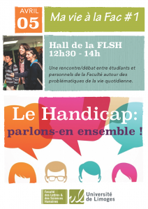 Des étudiants, des enseignants et des personnels partageront leurs expériences autour de la problématique du handicap : intégration, aménagement de cours et d’examens , accessibilité…