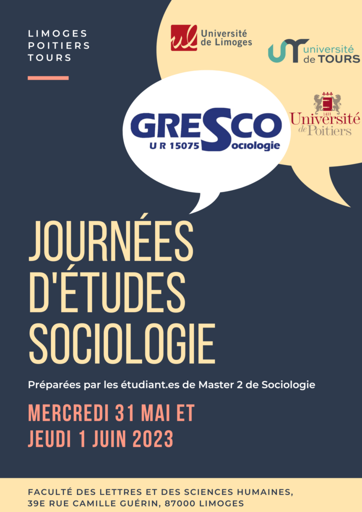 Les étudiantes et étudiantes du Master sociologie organisent deux journées d’études mercredi 31 mai et jeudi 1er juin 2023 en partenariat avec les étudiants des Universités de Tours et de Poitiers.