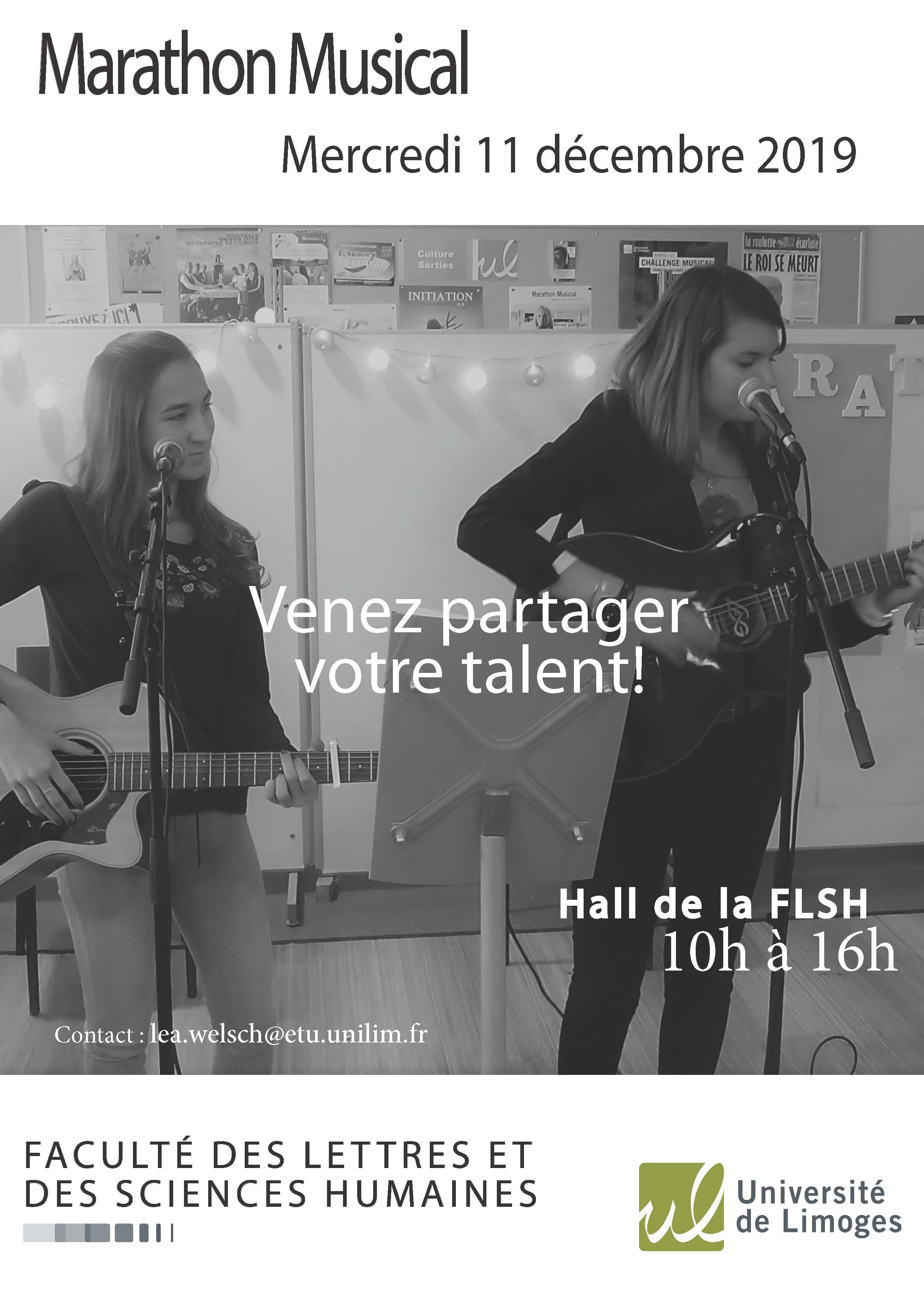 Catégories : Affiche_Marathon_musical_2019 Affiche_Marathon_musical_2019 39e rue Camille Guérin 87036 Limoges - France Tél. (+33) 05 55 43 56 00 Université ouverte source de réussites