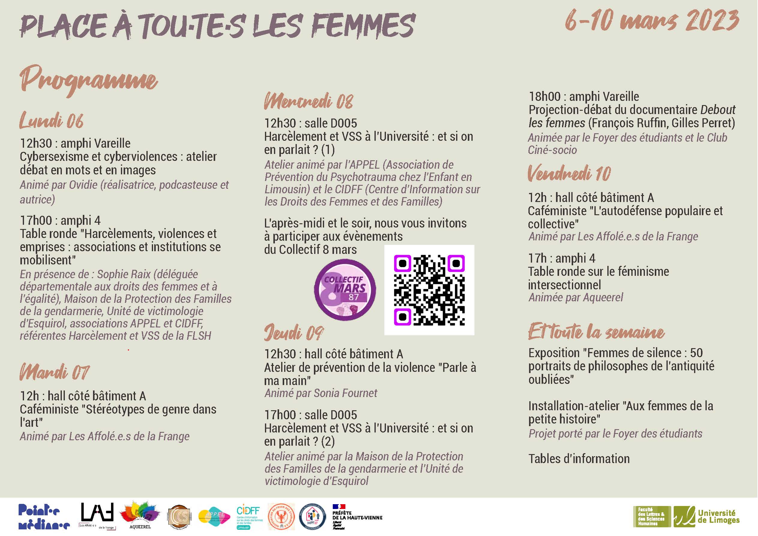 « Place à toutes les femmes » du 6 au 10 mars 2023 :