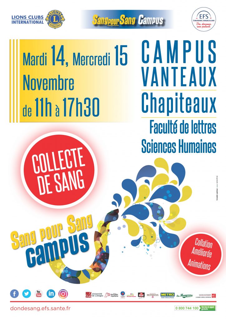 Étudiants et personnels de l’Université de Limoges mobilisez-vous, venez donner votre sang et sauver des vies !