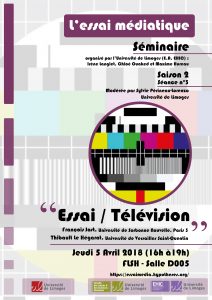 Catégories : séminaire télévision séminaire télévision 39e rue Camille Guérin 87036 Limoges - France Tél. (+33) 05 55 43 56 00 Université ouverte source de réussites