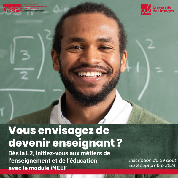 Dès la L2, initiez-vous aux métiers de l’enseignement et de l’éducation grâce au module iMEEF proposé par l’Institut National Supérieur du Professorat et de l’Éducation (INSPE) de l’Académie de Limoges.