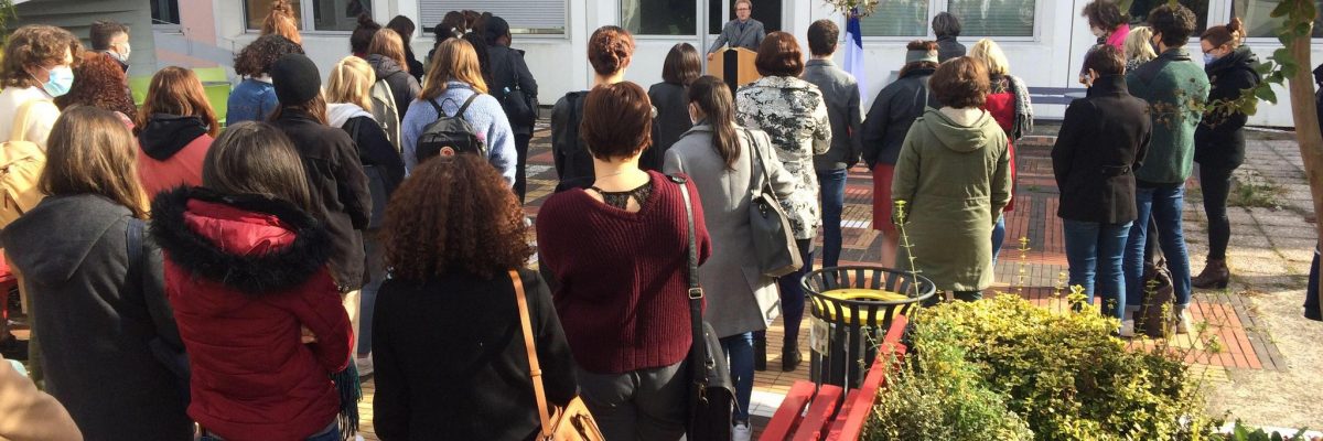 Les étudiant.e.s et les personnels de la Faculté des Lettres et des Sciences Humaines ont observé une minute de silence à la mémoire de Samuel Paty lundi 19 octobre 2020 à 12h.
