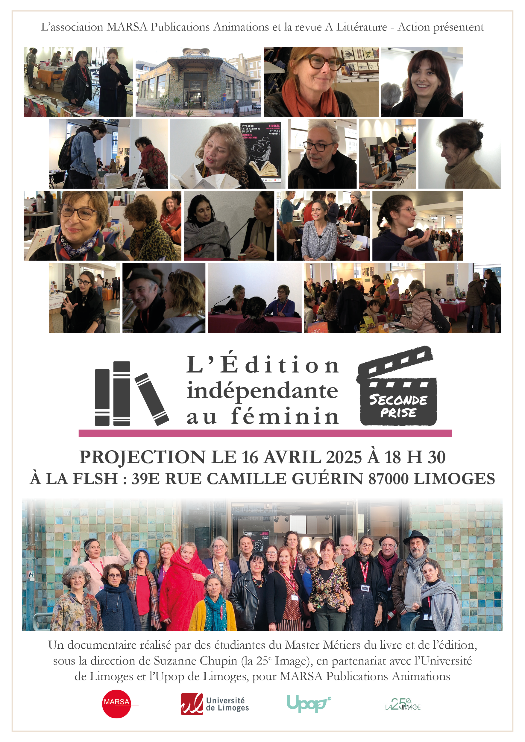 Projection du documentaire réalisé par les étudiantes du Master édition lors de la 2nde édtion du salon des éditrices indépendantes : mercredi 16 avril 2025 à 18h30 en amphithéâtre 4 à la Faculté des Lettres et des Sciences Humaines.